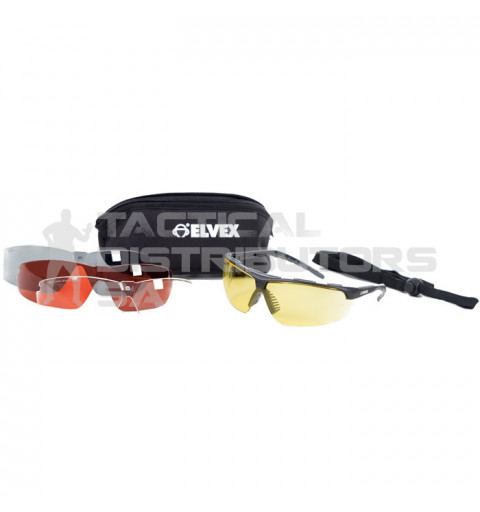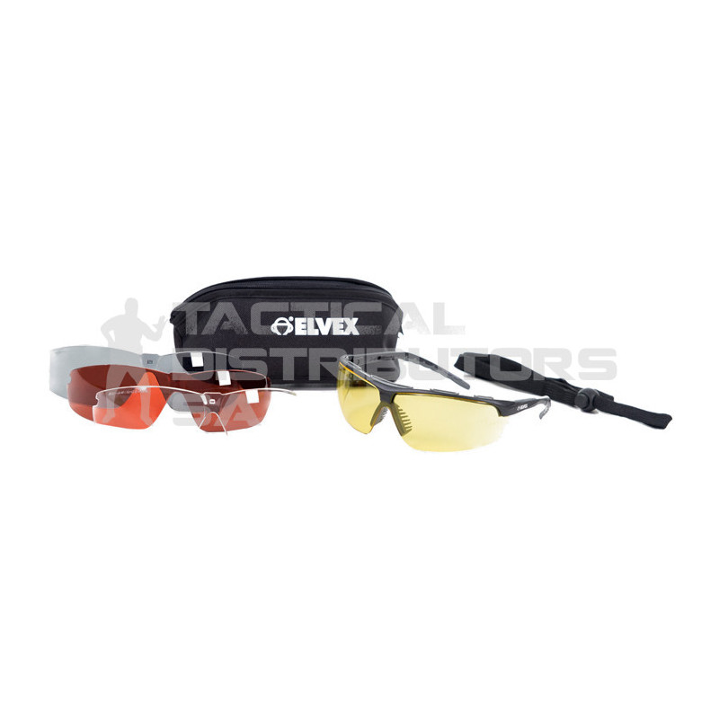 Elvex Denali Ballstic Glasses Black Frame w/Grey Soft Accents - 4 Lens Set